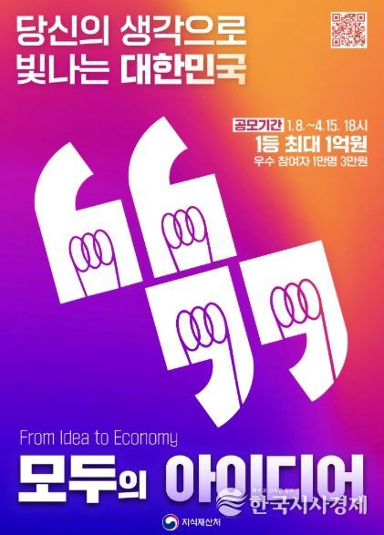 지식재산처(처장 김용선)는 관계부처와 협력을 통해 사회 곳곳에 있는 국민의 창의적 아이디어를 대대적으로 발굴・고도화하여, 그 결과물을 실제 사업과 정책으로 연결하는 범국가 국민 참여 프로젝트인 「모두의 아이디어」를 1월 8일부터 본격 시작한다.