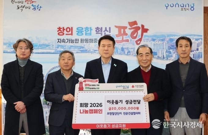 포항철강단지 전문건설협의회는 12일 시청 대외협력실에서 ‘희망2026 나눔캠페인’ 이웃돕기 성금 2,000만 원을 포항시에 기탁했다.