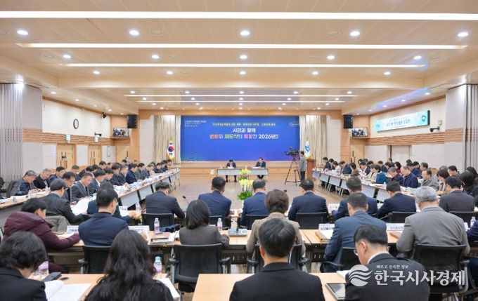 한국시사경제 전남취재본부 | 여수시는 지난 15일 시청 회의실에서 정기명 여수시장 주재로 5급 이상 간부 공무원 70여 명이 참석한 가운데 ‘2026년 주요 업무 보고회’를 개최했다.