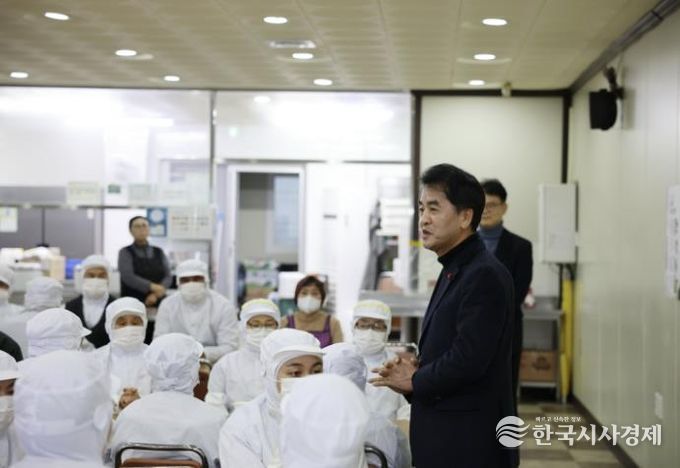 한국시사경제 오영주 기자 | 최재형 보은군수는 19일 ㈜이킴 삼승공장을 방문해 지난해 화재로 피해입은 보은공장 상황과 생산 정상화와 대체 생산 체계 운영 상황을 점검하고 임직원들을 격려했다.