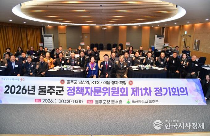 한국시사경제 울산취재본부 | 울산 울주군이 20일 군청 문수홀에서 이순걸 울주군수를 비롯해 위원 60여명이 참석한 가운데 ‘2026년 울주군 정책자문위원회 제1차 정기회의’를 개최했다.