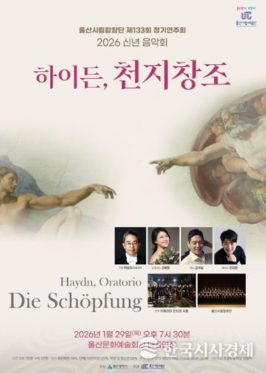 한국시사경제 울산취재본부 | 울산시립합창단은 오는 1월 29일 오후 7시 30분 울산문화예술회관 대공연장에서 신년음악회로 제133회 정기연주회인 하이든의 ‘천지창조(The Creation)’를 선보인다.