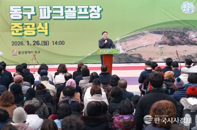 한국시사경제 울산취재본부 | 울산 동구는 1월 26일 오후 2시 동구 동부동 99-15번지 일원에 지역 주민 150여 명이 참석한 가운데 동구파크골프장 준공식을 개최했다.