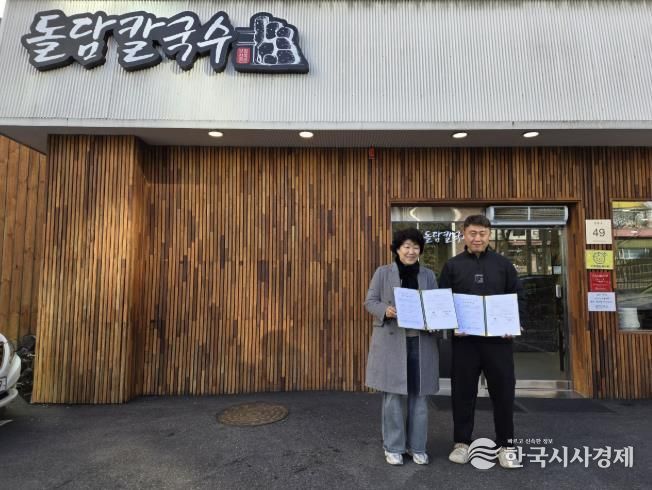 한국시사경제 부산취재본부 | 부산 금정구 남산동은 지난 21일, 관내 업소인 ‘제주돌담칼국수 범어사점'과 업무협약(MOU)을 체결하고, 복지 특화사업인 ‘죽이랑, 건강이랑' 사업을 추진한다고 밝혔다.