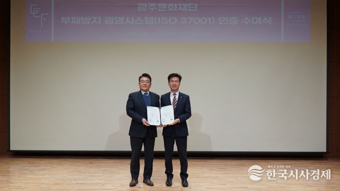 한국시사경제 광주취재본부 | 광주문화재단은 공정하고 투명한 조직문화 정착을 위해 인증기관의 심사를 거쳐 ‘부패방지 경영시스템(ISO 37001)’ 인증을 획득했다고 밝혔다.