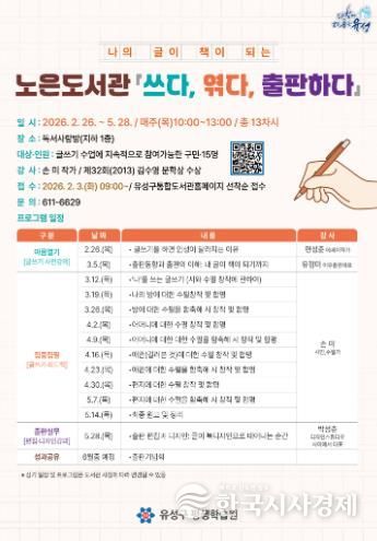 정용래 유성구청장은 “이번 프로그램이 주민의 자기표현 역량과 글쓰기 능력 향상에 도움이 되길 바란다”라며 “도서관이 단순히 책을 읽는 공간이 아닌 생활 문화 거점으로 자리 잡을 수 있도록 지원하겠다”라고 말했다.