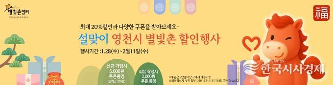 한국시사경제 경북취재본부 | 영천시는 지역 농특산물 온라인 쇼핑몰 ‘별빛촌장터’에서 병오년 설을 맞아 2월 11일까지 특별 할인행사를 진행한다고 밝혔다.