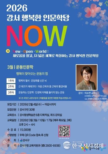 한국시사경제 기동취재팀 | 서울 강서구는 자신의 몸과 건강을 탐구하고 싶은 주민을 위해 운동 인문학 강의를 마련해 수강자 30명을 모집한다.