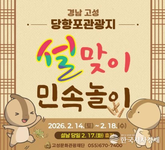 한국시사경제 윤광희 기자 | (재)고성문화관광재단은 2026년 설 연휴를 맞아 당항포관광지를 찾는 관광객과 고성군민을 위해 ‘2026 당항포관광지 설맞이 민속놀이 체험’ 행사를 운영한다고 밝혔다.