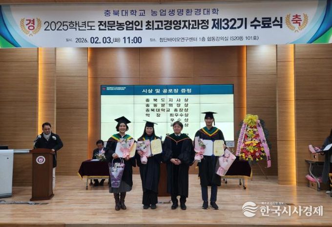 한국시사경제 오영주 기자 | 충북 진천군 농업기술센터는 역량있는 농업인 CEO를 양성하는 ‘전문농업인 최고경영자과정’ 수료식에서 진천군 농업인 강민우 씨가 충북대학교 총장상을 수상했다고 3일 밝혔다.