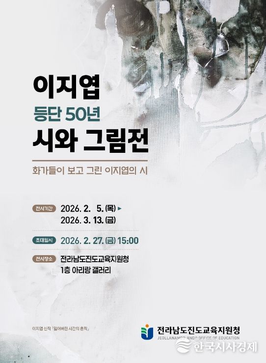 한국시사경제 전남취재본부 | 전라남도진도교육지원청은 2월 5일부터 3월 13일까지 아리랑 갤러리에서 이지엽 시인 등단 50년을 기념하는 『시와 그림展』을 개최한다.