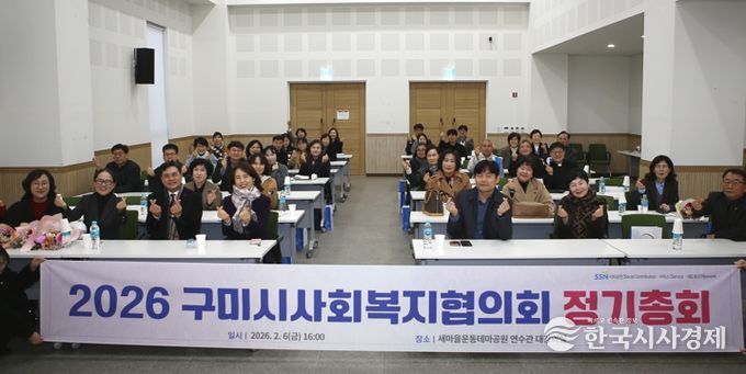 한국시사경제 경북취재본부 | 구미시는 구미시사회복지협의회 주관으로 지난 6일 새마을운동테마공원 연수관 대강의실에서 임원과 회원 등 40여 명이 참석한 가운데 '2026년 구미시사회복지협의회 정기총회'를 열었다.