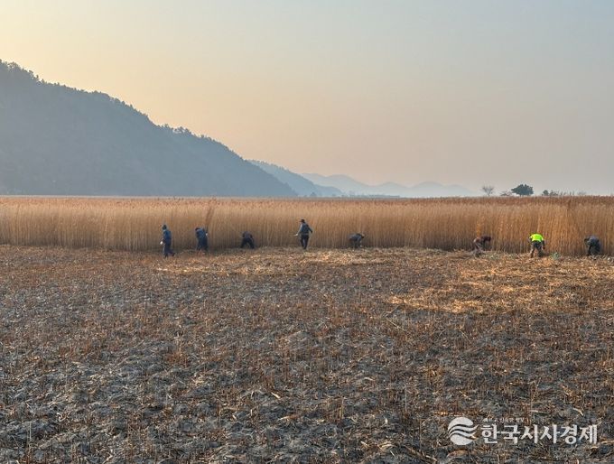 한국시사경제 전남취재본부 | 순천시는 2월 9일부터 4월 30일까지 약 3개월간 소조기 간조 물 때 전후 5~6일 동안 순천만습지 일원에서 갈대숲 탐방로 고엽갈대 제거와 원형갈대 군락 갈대 베기 작업을 추진한다고 밝혔다.