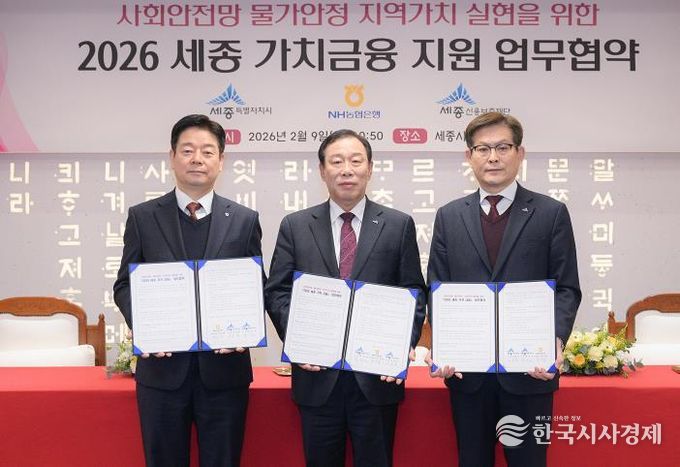 한국시사경제 세종취재분부 | 세종특별자치시가 9일 시청에서 농협은행, 세종신용보증재단과 ‘세종 가치 금융’ 소상공인 금융지원 업무협약을 체결했다.