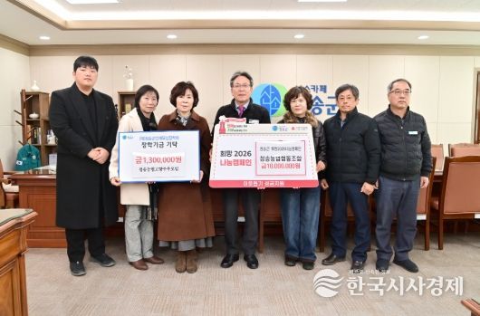 청송군 관계자는 “지역사회를 위한 따뜻한 나눔과 미래 세대를 위한 뜻깊은 기탁에 깊이 감사드린다”며 “기탁된 성금과 장학금은 도움이 필요한 이웃과 지역 학생들을 위해 소중히 사용하겠다”고 전했다.