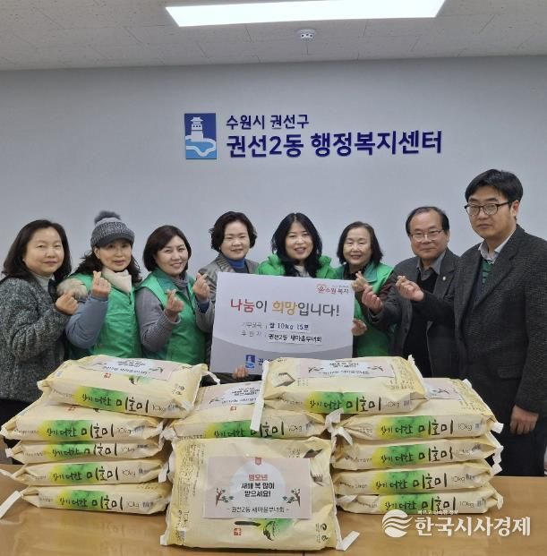 한국시사경제 사회팀 | 권선구 권선2동 새마을부녀회가 지난 9일, 설 명절을 맞아 사랑의 쌀 나눔 행사를 가졌다.