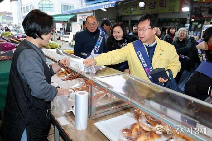 한국시사경제 광주취재본부 | 박병규 광산구청장이 광산구 공직자들과 11일 송정매일시장에서 설 명절맞이 전통시장 장보기 행사와 함께 물가안정 캠페인을 진행했다.