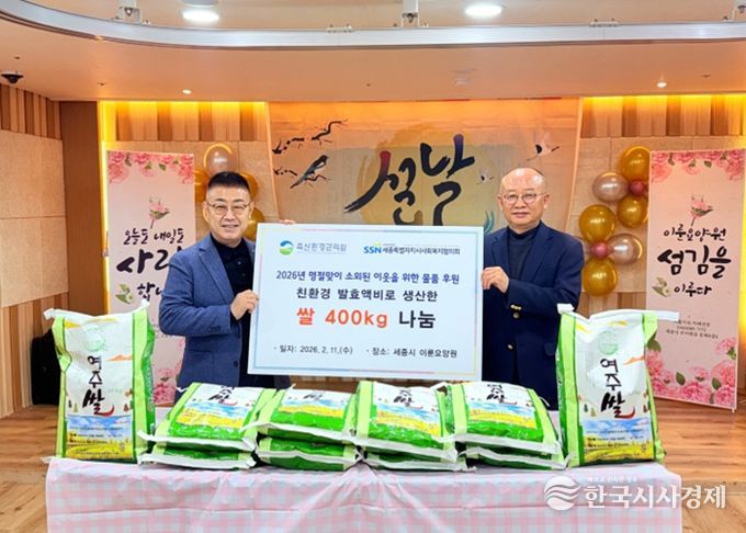 한국시사경제 세종취재분부 | 세종특별자치시사회복지협의회 사회공헌센터는 11일 축산환경관리원과 함께 설 명절을 앞두고 지역 내 사회복지시설·기관을 대상으로 친환경 쌀 400kg을 기부식을 진행했다.