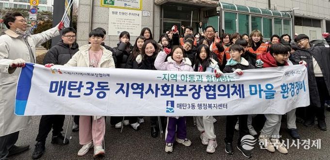 한국시사경제 사회팀 | 영통구 매탄3동은 지난 11일 지역사회보장협의체, 지역아동복지센터, 관계 공무원 등 40여 명이 참여해 환경 정비 활동을 실시했다.
