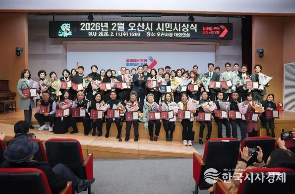 한국시사경제 문화팀 | 오산시는 지난 11일 오산시청 대회의실에서 ‘2026년 2월 시민시상식’을 개최하고, 지역사회 발전과 이웃사랑 실천에 기여한 시민 46명을 대상으로 표창을 수여했다.
