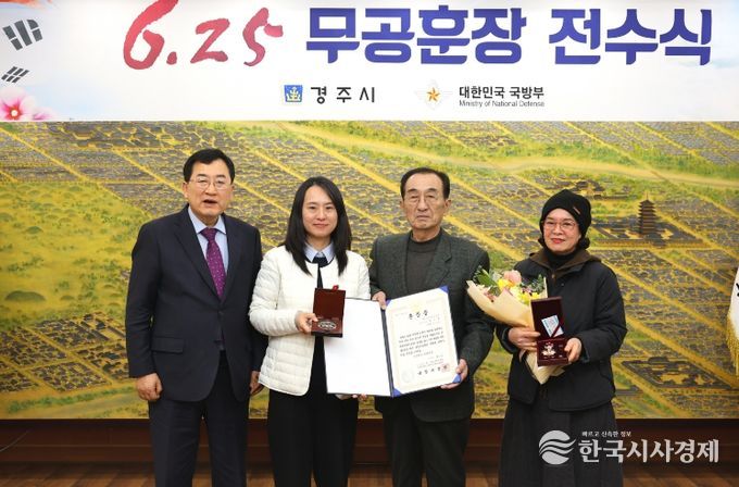 한국시사경제 경북취재본부 | 경주시는 지난 12일, 6·25전쟁 당시 무공을 세운 유공자 故 주석종 상사의 유족에게 무공훈장과 훈장증, 기념패를 전수했다.