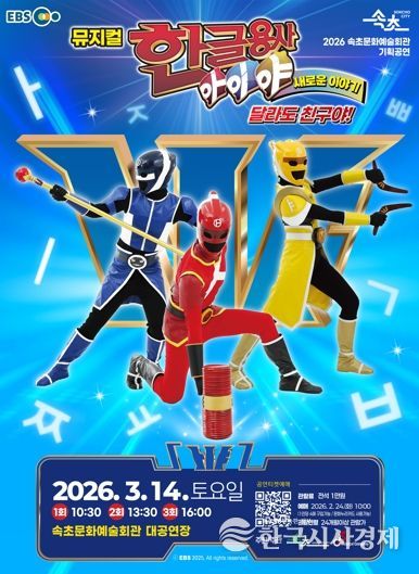 한국시사경제 이정이 기자 | 속초시는 3월 14일 10시 30분, 13시 30분, 16시 하루 3회 속초문화예술회관에서 뮤지컬‘한글용사 아이야 새로운 이야기-달라도 친구야’를 선보인다.