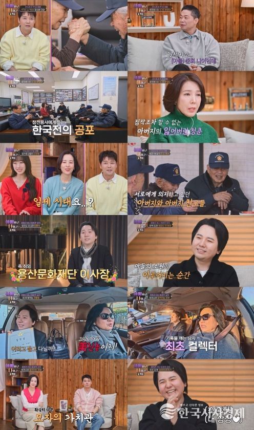 이어 전수경은 아버지와 아버지의 전우들에게 식사 대접을 하기 위해 중식집을 찾았다. 게살수프가 나오자 전수경의 아버지는 “일제 시대에 메밀묵 썰어 다니던 게 생각난다”며 역대급 맛 표현에 나섰다. 이에 놀란 전수경이 “일제 강점기 때 학교 다니셨겠다”고 거들자 회장은 “초등학교 4학년 때 해방됐다. 초등학교 졸업식이 6월 28일이었는데, 25일 사변이 생겨서 졸업도 못했다”고 안타까운 사연을 밝혔다. 한창 꽃피울 나이에 끼니도 챙기지 못하고 인권마저 전무한 전장으로 향했던 어린 병사들의 생생한 경험담은 먹먹함을 안겼다. 전수경은 “가족 속에 있는 아버지만 봐서 친구 혹은 동료분들과 함께 있는 모습이 궁금했다. 사람으로부터 더 에너지를 받아 갈 수 있는 그런 모습을 볼 수 있어서 좋았다”며 아버지의 삶을 함께 걸어본 듯 소중한 시간에 대한 소감을 전했다.