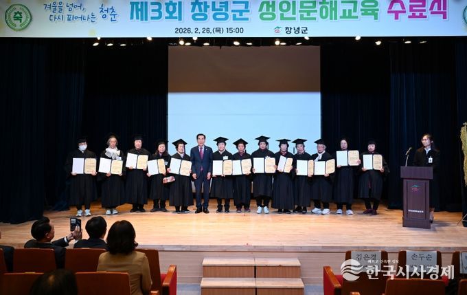 한국시사경제 노승선 기자 | 창녕군은 26일 창녕문화예술회관에서 ‘제3회 창녕군 성인문해교육 수료식 및 시화전’을 개최했다.