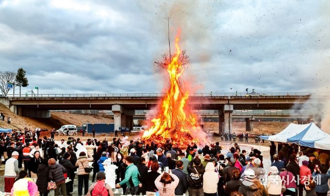 한국시사경제 경남취재본부 | 함안군은 지난 3일 가야읍 함안천변에서 전국농민회총연맹 함안군농민회(회장 김성만)가 주최 주관한 ‘제23회 병오년 정월대보름 맞이 달집사르기 행사’가 성황리에 개최됐다고 밝혔다.