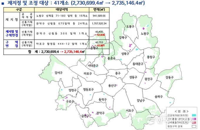 아울러 기존 신속통합기획 주택재개발 1곳은 사업구역 결정 경계에 맞춰 토지거래허가구역 경계를 조정했다. 대상지는 마포구 합정동 444-12 일대로, 구역 면적이 40,753㎡에서 42,801㎡로 증가했다. 이 구역의 허가대상 면적 및 지정기간은 기존과 동일하게 유지된다. 서울시는 지정기간 만료 시점인 2027년 1월 28일 전에 재지정 필요성을 검토할 계획이다.