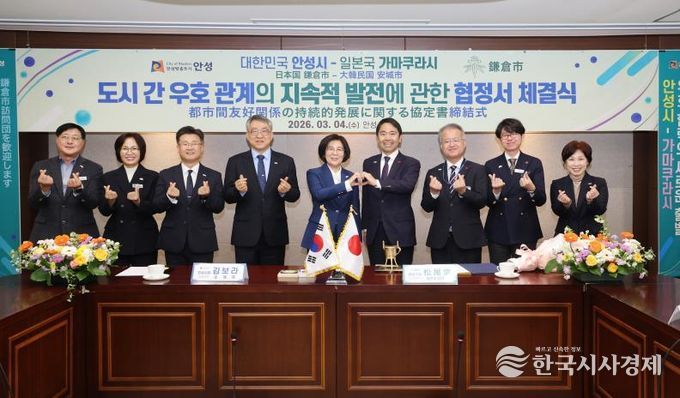 한국시사경제 경기취재본부 | 안성시는 2026년 3월 4일 오전 11시 안성시청 본관 2층 상황실에서 일본 가나가와현 가마쿠라시(시장 마쓰오 다카시)와 '도시 간 우호 관계의 지속적 발전에 대한 협정'을 체결하고 양 도시 간 문화·예술 및 청소년 분야 교류를 본격 추진하기로 했다.