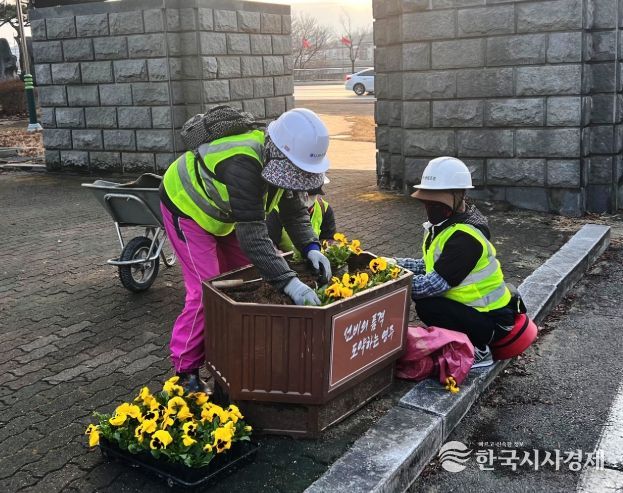 차량과 보행자 통행이 많은 주요 도로변 화분과 시민운동장, 읍면동 행정복지센터 등에 노란 팬지를 심어 거리 환경을 화사하게 조성했다.