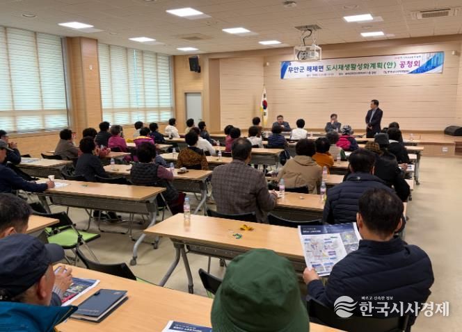 한국시사경제 권충현 기자 | 무안군은 해제면 도시재생 활성화계획(안)에 대한 공청회를 주민과 관계 전문가 등 60여 명이 참석한 가운데 지난 6일 해제면 주민다목적센터 강당에서 개최했다고 밝혔다.