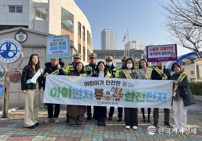 한국시사경제 울산취재본부 | 울산 동구는 3월 10일 화암초등학교 및 문현초등학교 일원에서 어린이들의 안전한 보행환경 조성을 위한 교통지도와 함께 ‘아이 먼저’ 교통 안전 캠페인‘을 했다.