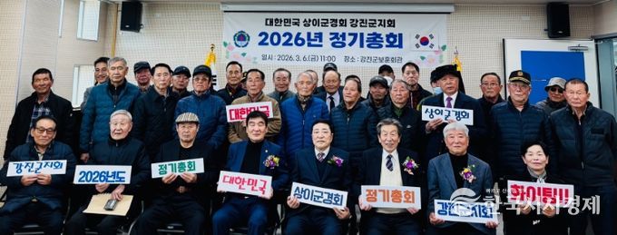 한국시사경제 권충현 기자 | 상이군경회 강진군지회(회장 김규현)가 지난 6일 강진군 보훈회관 대회의실에서 2026년 정기총회를 개최했다. 이날 총회에는 상이군경회 전라남도지부 김국년 지부장을 비롯해 8개 보훈단체장, 회원 40여 명이 참석했다..