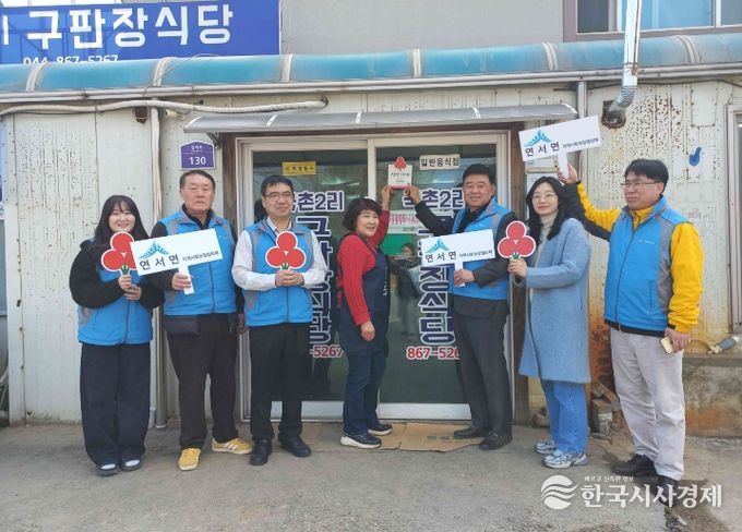 한국시사경제 세종취재분부 | 세종특별자치시 연서면지역사회보장협의체(공동위원장 김학용·한재현)와 세종사회복지공동모금회가 12일 연서면 국촌리에 위치한 국촌2리 구판장 식당(대표 김정숙)에 착한가게 현판을 전달했다.