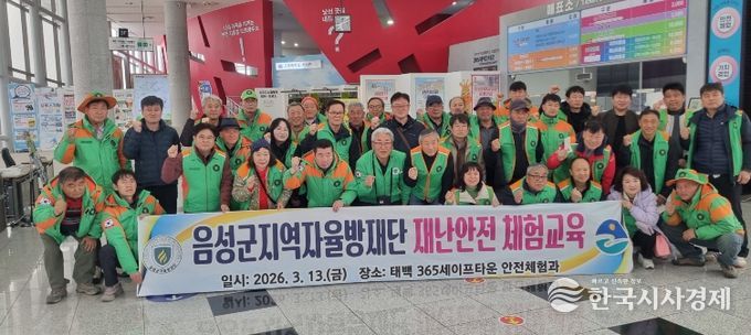 한국시사경제 오영주 기자 | 음성군 지역자율방재단(단장 문종락)은 13일 강원 태백시 소재 한국안전체험관에서 ‘2026년 음성군 지역자율방재단 재난안전체험교육’을 실시했다.
