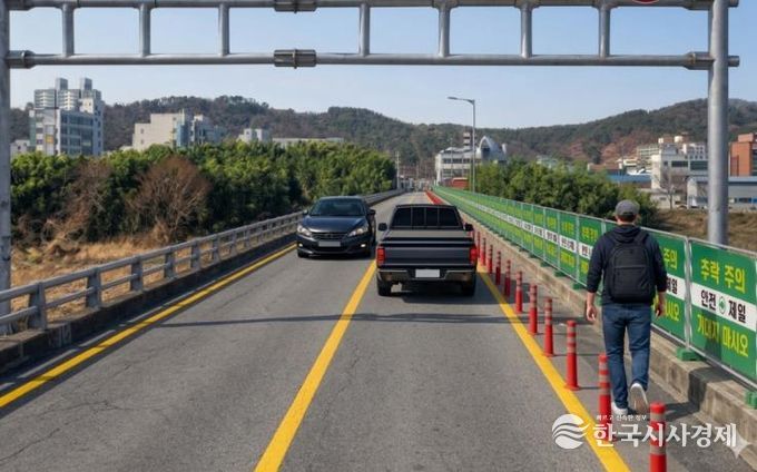 한국시사경제 울산취재본부 | 울산 중구가 주민들의 안전을 위해 삼호교(차도교) 차로 폭을 조정해 임시 통행로를 조성한다.
