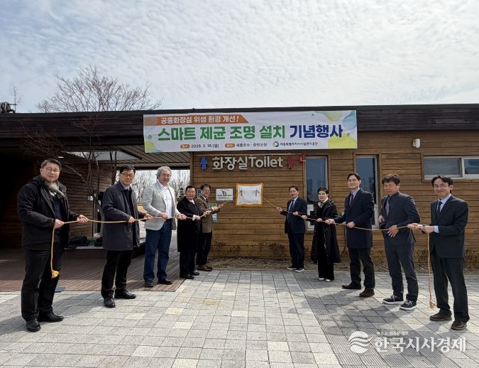 한국시사경제 세종취재분부 | 세종특별자치시시설관리공단은 16일 세종호수공원 푸른들판에서 공중화장실 내 ‘제균 조명 설치 현판식’을 개최했다고 밝혔다.