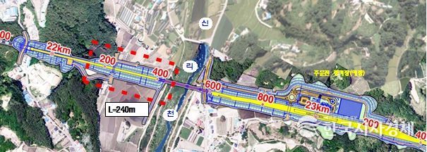 이번 사업은 기존 토공(성토)노반 L=240m 구간을 교량 L=210m로 변경하는 내용이다.