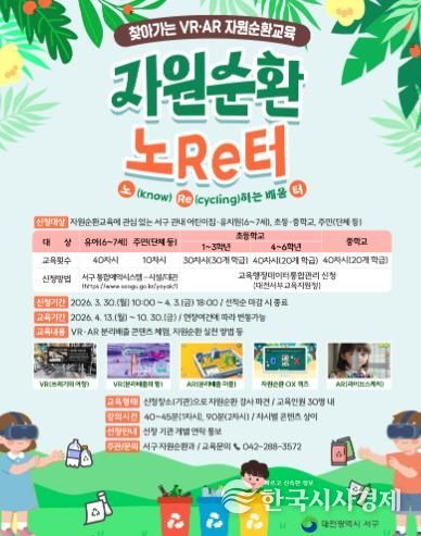 한국시사경제 대전취재본부 | 대전 서구는 가상현실(VR) 및 증강현실(AR) 콘텐츠를 활용한 체험형 교육 프로그램인 ‘자원순환 노Re터’를 운영한다고 17일 밝혔다.