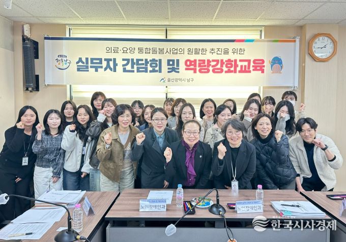 한국시사경제 문화팀 | 울산 남구(구청장 서동욱)는 17일 남구청 제2별관 2층 회의실에서 동 행정복지센터와 유관기관 실무자들을 대상으로 간담회와 역량 강화 교육을 실시했다.