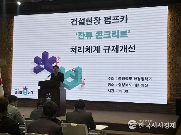 한국시사경제 사회팀 | 충북도가 17일 건설·펌프카협회 및 시군 담당 공무원 등 100여 명이 참석한 가운데 ‘펌프카 잔류 콘크리트 처리체계 규제개선’ 설명회를 개최했다.
