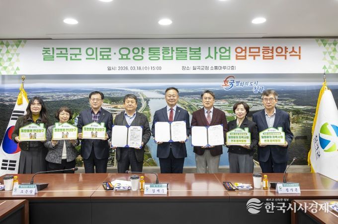 한국시사경제 의료보건팀 | 칠곡군은 18일 군청에서 칠곡군립노인요양병원, 왜관병원과 함께 ‘퇴원환자 지역사회 연계사업’ 추진을 위한 업무협약(MOU)을 체결했다.