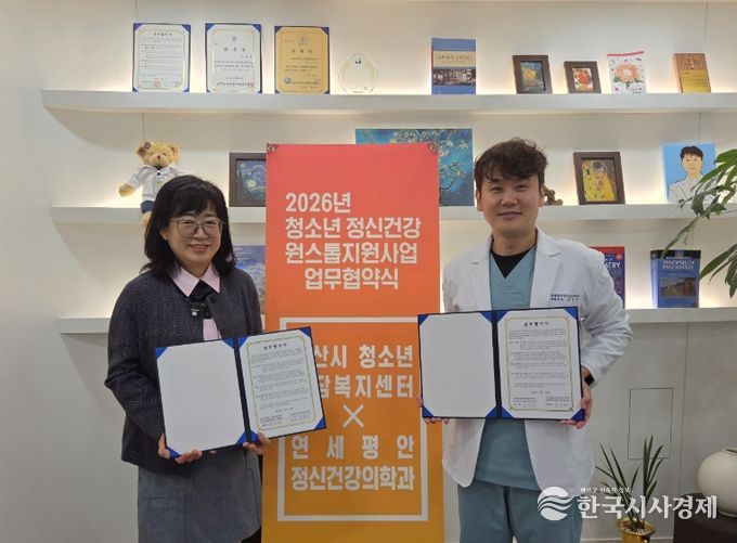 협약식은 연세평안정신건강의학과에서 진행됐으며, 협약에 따라 양 기관은 관내에서 발굴한 대상 청소년에게 신속한 치료 지원과 지속적인 관리에 필요한 정보 제공 등 청소년의 정신건강 증진을 위해 상호 협력할 예정이다.