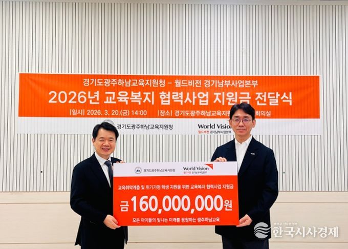 한국시사경제 기동취재팀 | 경기도광주하남교육지원청은 3월 20일 광주하남교육지원청에서 월드비전 경기남부지역본부(본부장 최성호)와 함께 교육취약계층 학생 지원을 위한 지원금 전달식을 개최했다.