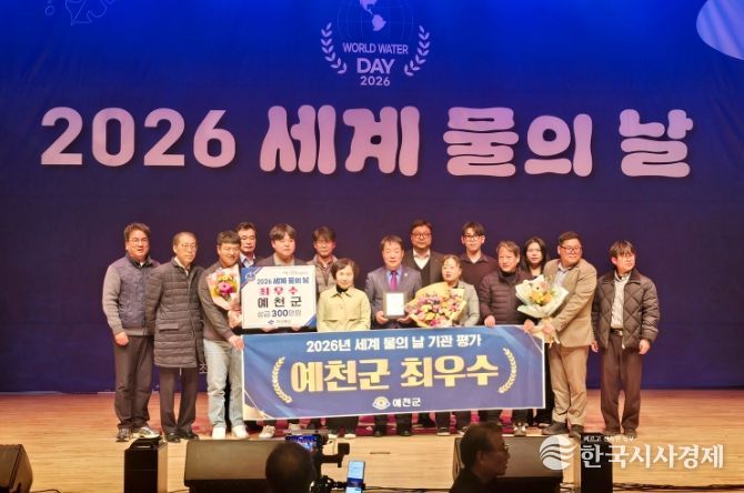 한국시사경제 사회팀 | 예천군은 ‘세계 물의 날 기념 평가’에서 ‘최우수’ 기관으로 선정되어, 20일 구미시 강동문화복지회관에서 열린 ‘2026년 세계 물의 날 기념행사’에서 기관 표창을 수여받았다.