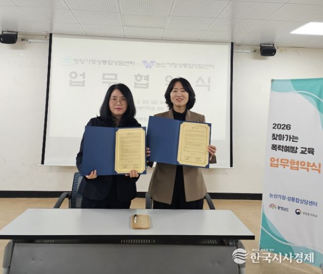 한국시사경제 문화팀 | 청양가정성통합상담센터는 지역 내 폭력 예방과 안전한 지역사회 조성을 위해 지난 20일 청양복지타운 여성회관에서 논산가정성통합상담센터와 업무협약(MOU)을 체결했다고 밝혔다.