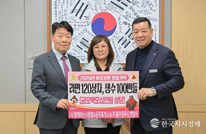 이날 세 기관은 라면 120상자와 생수 100묶음 등 총 550만 원 상당의 물품을 기탁했으며, 해당 물품은 공주시 16개 읍면동의 취약계층에게 전달될 예정이다.