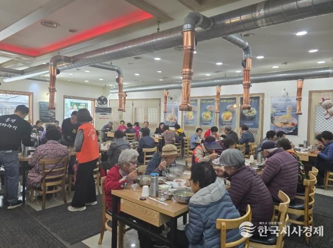 한국시사경제 문화팀 | 통영 지역 건설업자 모임인‘해바라기’에서는 지난 20일 취약계층 어르신 180명을 대상으로 보양식‘갈비탕’과‘간식꾸러미(파스,양말,두유등)’를 지원했다.